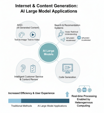 在互联网与内容生成领域,AIGC(AI生成内容)应用蓬勃发展,包括文生图、文生视频等应用,异构算力的支持使得实时生成成为可能。大模型搜索与推荐系统通过向量检索、语义理解等技术,GPU/ASIC加速推荐系统推理,提升了用户体验和系统效率。智能客服、内容审核、代码生成等应用也在互联网企业中得到广泛应用,大幅提升了业务效率和用户体验。