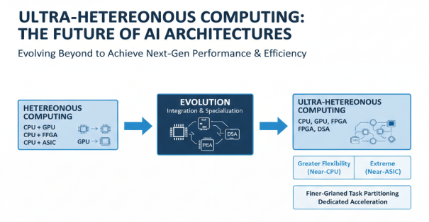 超异构计算是异构计算的进一步发展,由CPU、GPU、FPGA和DSA(Domain-Specific Architecture)多架构处理器组成,目标是接近CPU的灵活性和ASIC的性能效率。超异构计算架构通过更加精细的任务划分和专用加速,实现更高性能和能效,成为未来计算架构的重要发展方向。
